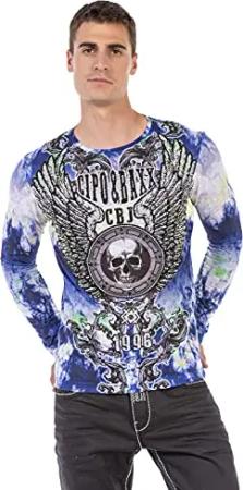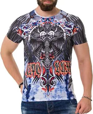 Herren Sommer T-Shirt Baumwolle Bikershirt Alloverprint CT710 Blau M