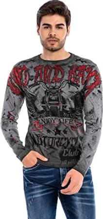 Herren Sweatshirt CL449 Grau – Stylischer Pullover im Modernen Streetwear Look mit Rundhals & Print – Bequemer Sweater für Alltag, Freizeit & Party - CL449 Grau M