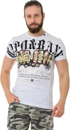 Herren Kurzarm T-Shirt Freizeit Baumwolle Print Farbig T-Shirt Rundhals CT683 Weiß S