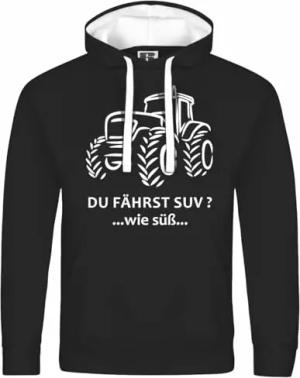 Herren Kapuzenpullover mit Aufdruck Du fährst SUV wie süß -, Größe:XL, Farbe:schwarz/weiße Kapuze