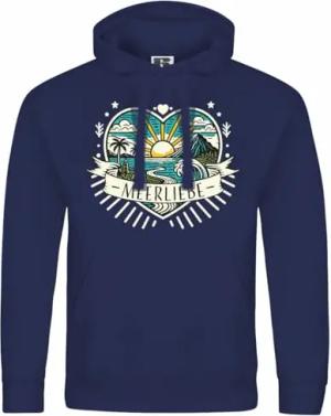 Herren Kapuzenpullover mit Aufdruck Ich Liebe das Meer - Urlaub Statement, Größe:S, Farbe:dunkelblau
