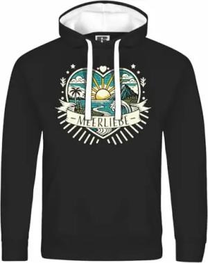 Herren Kapuzenpullover mit Aufdruck Ich Liebe das Meer - Urlaub Statement, Größe:S, Farbe:schwarz/weiße Kapuze
