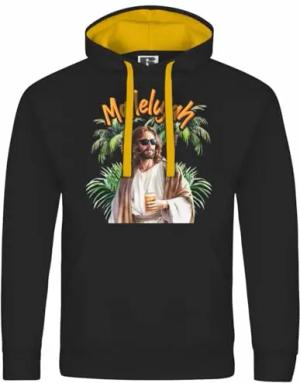 Herren Kapuzenpullover mit Aufdruck Mallelujah - Urlaub Party, Größe:XL, Farbe:schwarz/gelbe Kapuze