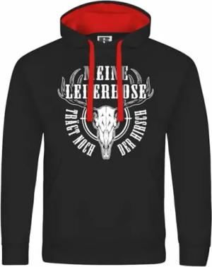 Herren Kapuzenpullover mit Aufdruck Meine Lederhose trägt noch der Hirsch - Jagd Wald, Größe:S, Farbe:schwarz/rote Kapuze