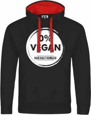 Herren Kapuzenpullover mit Aufdruck Null Prozent VEGAN - Fleisch Essen, Größe:L, Farbe:schwarz/rote Kapuze