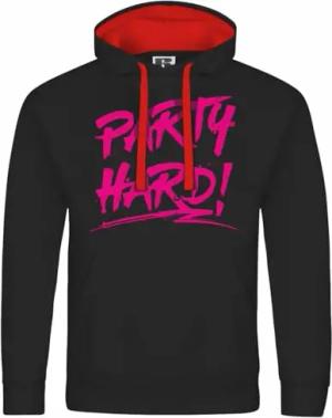 Herren Kapuzenpullover mit Aufdruck Party Einhorn - Feiern Festival, Größe:S, Farbe:schwarz/rote Kapuze