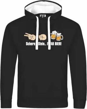 Herren Kapuzenpullover mit Aufdruck Schere Stein Paar Bier - Drunk Alkohol, Größe:L, Farbe:schwarz/weiße Kapuze
