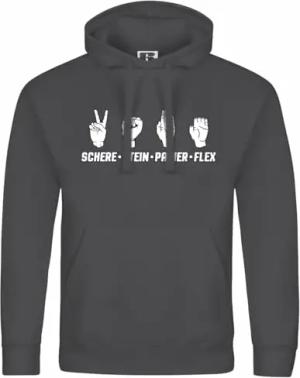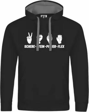 Herren Kapuzenpullover mit Aufdruck Schere Stein Papier Flex - Humorvoll Arbeit, Größe:S, Farbe:schwarz/graue Kapuze