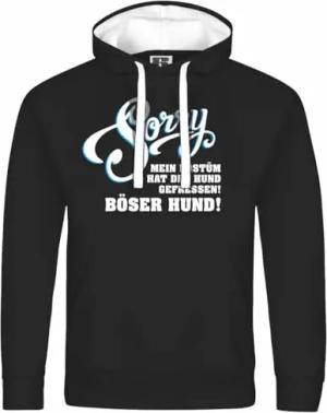 Herren Kapuzenpullover mit Aufdruck Sorry Mein Kostüm hat der Hund gefressen - Humorvoll Statement, Größe:L, Farbe:schwarz/weiße Kapuze