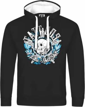 Herren Kapuzenpullover mit Aufdruck Tattoos i Like That Shit - Kunst Humorvoll, Größe:L, Farbe:schwarz/weiße Kapuze