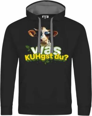 Herren Kapuzenpullover mit Aufdruck was KUHgst du -, Größe:S, Farbe:schwarz/graue Kapuze