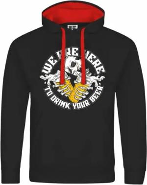Herren Kapuzenpullover mit Aufdruck We Are here to Drink Your Beer - Drunk Saufen, Größe:S, Farbe:schwarz/rote Kapuze