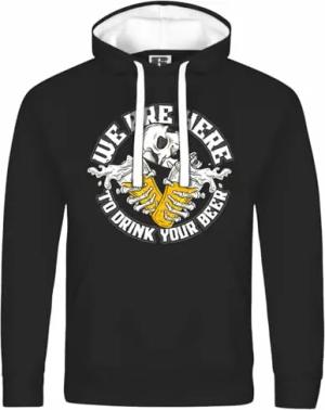 Herren Kapuzenpullover mit Aufdruck We Are here to Drink Your Beer - Drunk Saufen, Größe:S, Farbe:schwarz/weiße Kapuze