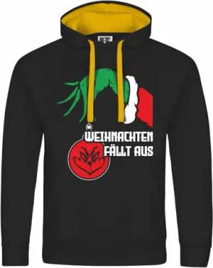 Herren Kapuzenpullover mit Aufdruck Weihnachten fällt aus - Xmas Fest, Größe:L, Farbe:schwarz/gelbe Kapuze