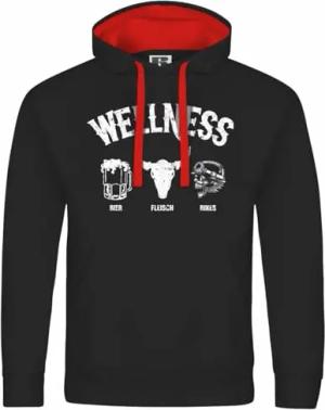 Herren Kapuzenpullover mit Aufdruck Wellness für Biker - Wohlfühlen Standart, Größe:M, Farbe:schwarz/rote Kapuze