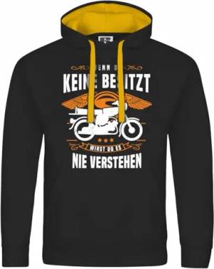 Herren Kapuzenpullover mit Aufdruck Wenn du Keine besitzt wirst du es nie verstehen - Simson Oldschool, Größe:M, Farbe:schwarz/gelbe Kapuze