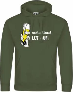 Herren Kapuzenpullover mit Aufdruck Wer Nicht mittrinkt fällt auf - Drunk Saufen, Größe:S, Farbe:Olive