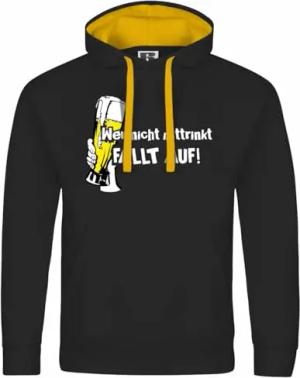 Herren Kapuzenpullover mit Aufdruck Wer Nicht mittrinkt fällt auf - Drunk Saufen, Größe:XL, Farbe:schwarz/gelbe Kapuze