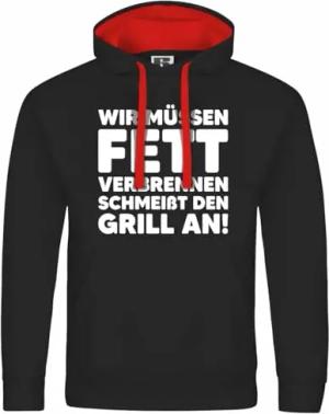 Herren Kapuzenpullover mit Aufdruck Wir müssen Fett verbrennen schmeiß den Grill an - Braten Humorvoll, Größe:L, Farbe:schwarz/rote Kapuze