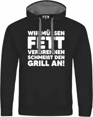 Herren Kapuzenpullover mit Aufdruck Wir müssen Fett verbrennen schmeiß den Grill an - Braten Humorvoll, Größe:XL, Farbe:schwarz/graue Kapuze