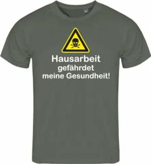 Herren T-Shirt mit Aufdruck Hausarbeit gefährdet Meine Gesundheit - Arbeitskleidung, Größe:5XL, Farbe:Olive