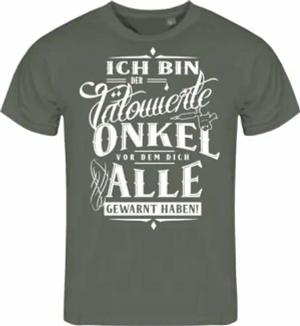 Herren T-Shirt mit Aufdruck Ich Bin der tätowierte Onkel - Tattoo Style, Größe:3XL, Farbe:Olive