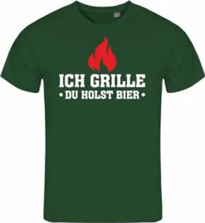 Herren T-Shirt mit Aufdruck Ich Grille du Holst Bier - Grill Party, Größe:S, Farbe:flaschengrün