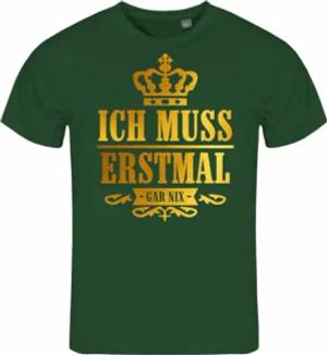 Herren T-Shirt mit Aufdruck Ich muss erstmal gar nix - Humorvoll Statement, Größe:S, Farbe:flaschengrün