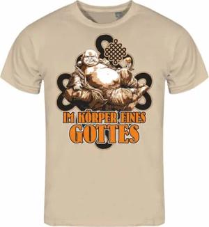 Herren T-Shirt mit Aufdruck Im Körper eines Gottes - Dick Humorvoll, Größe:3XL, Farbe:Sand
