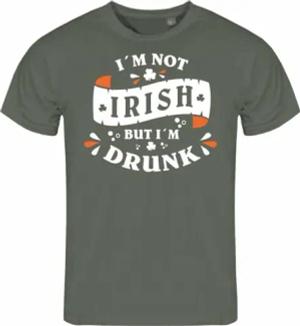Herren T-Shirt mit Aufdruck Im not Irish but im Drunk - Saufen Alkohol, Größe:4XL, Farbe:Olive