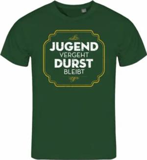 Herren T-Shirt mit Aufdruck Jugend vergeht Durst bleibt - Drunk Alkohol, Größe:5XL, Farbe:flaschengrün
