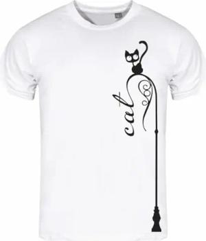 Herren T-Shirt mit Aufdruck Katze auf Laterne - Tierfreund Stil, Größe:5XL, Farbe:weiß