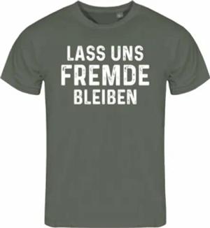 Herren T-Shirt mit Aufdruck Lass Uns Fremde bleiben - Humorvoll Statement, Größe:5XL, Farbe:Olive