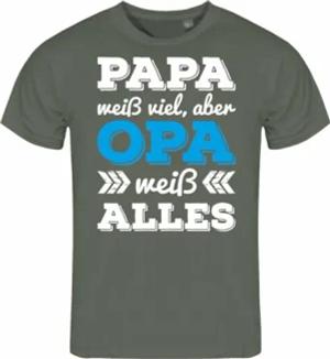 Herren T-Shirt mit Aufdruck Papa weiß viel Aber Opa weiß Alles - Familie Gemeinschaft, Größe:M, Farbe:Olive