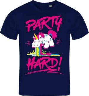 Herren T-Shirt mit Aufdruck Party Hard - Einhorn Feiern, Größe:3XL, Farbe:dunkelblau