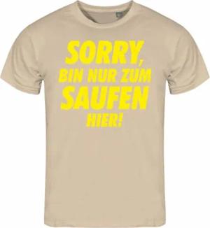 Herren T-Shirt mit Aufdruck Sorry Bin nur zum Saufen Hier - Drunk Feiern, Größe:3XL, Farbe:Sand