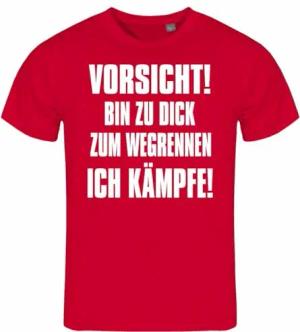 Herren T-Shirt mit Aufdruck Vorsicht Bin zu dick zum wegrennen ich kämpfe - Dick Statement, Größe:M, Farbe:rot