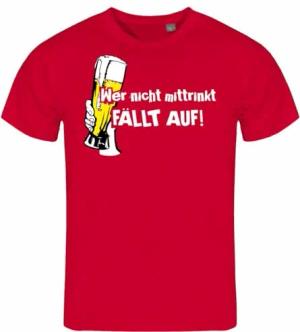 Herren T-Shirt mit Aufdruck Wer Nicht mittrinkt fällt auf - Drunk Alkohol, Größe:S, Farbe:rot