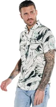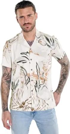 Herren Herren Kurzarm-Hemd Gemustert, Beige, 38988, Beige in Größe XXL