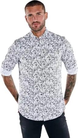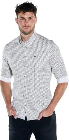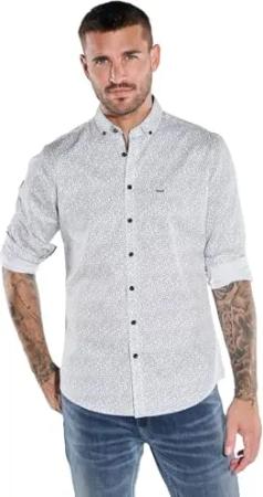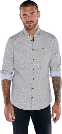 Herren Herren Langarm-Hemd Gemustert, Naturweiss, 39206, Naturweiss in Größe S