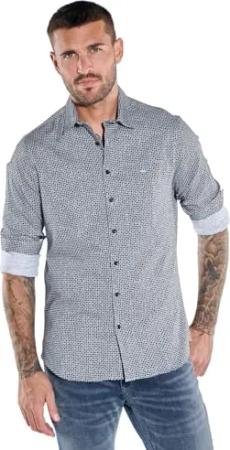 Herren Herren Langarm-Hemd Gemustert, Marineblau, 38266, Marineblau in Größe M