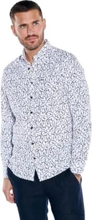 Herren Herren Langarm-Hemd Gemustert, Marineblau, 39120, Marineblau in Größe M
