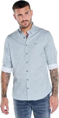 Herren Herren Langarm-Hemd Gemustert, Saphirblau, 39160, Saphirblau in Größe M