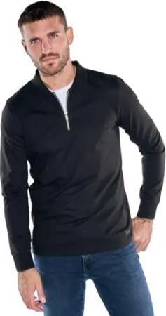 Herren Herren Langarm-Shirt mit Polokragen, Schwarz, 39216, Schwarz in Größe XL