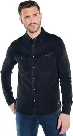 Herren Herren Langarm-Hemd Regular, Schwarz, 38344, Schwarz in Größe M