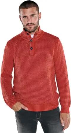 Herren Herren Pullover mit Troyerkragen, Dunkelorange, 37790, Dunkelorange in Größe M