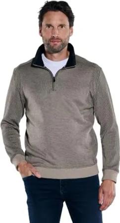Herren Herren Sweatshirt mit Troyerkragen, Braunbeige, 37911, Braunbeige in Größe M