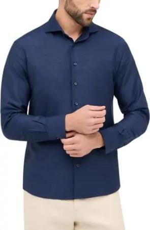 Male Linen Shirt unifarben MODERN FIT 46_H_1/1, 1/1, Midnight