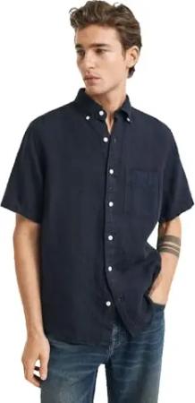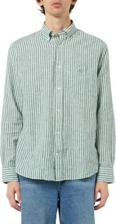 Herren REG Cotton Linen Stripe SS Shirt Hemd, Woody Green, XL