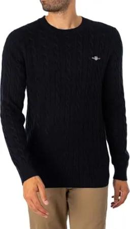 Herren Cotton Cable C-neck Pullover, Evening Blue, 4XL EU